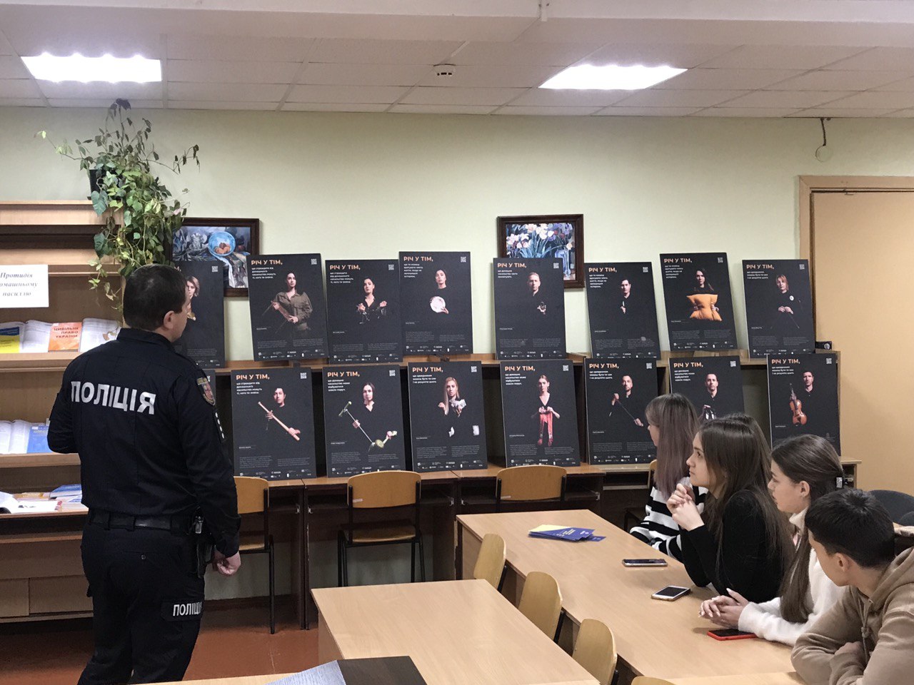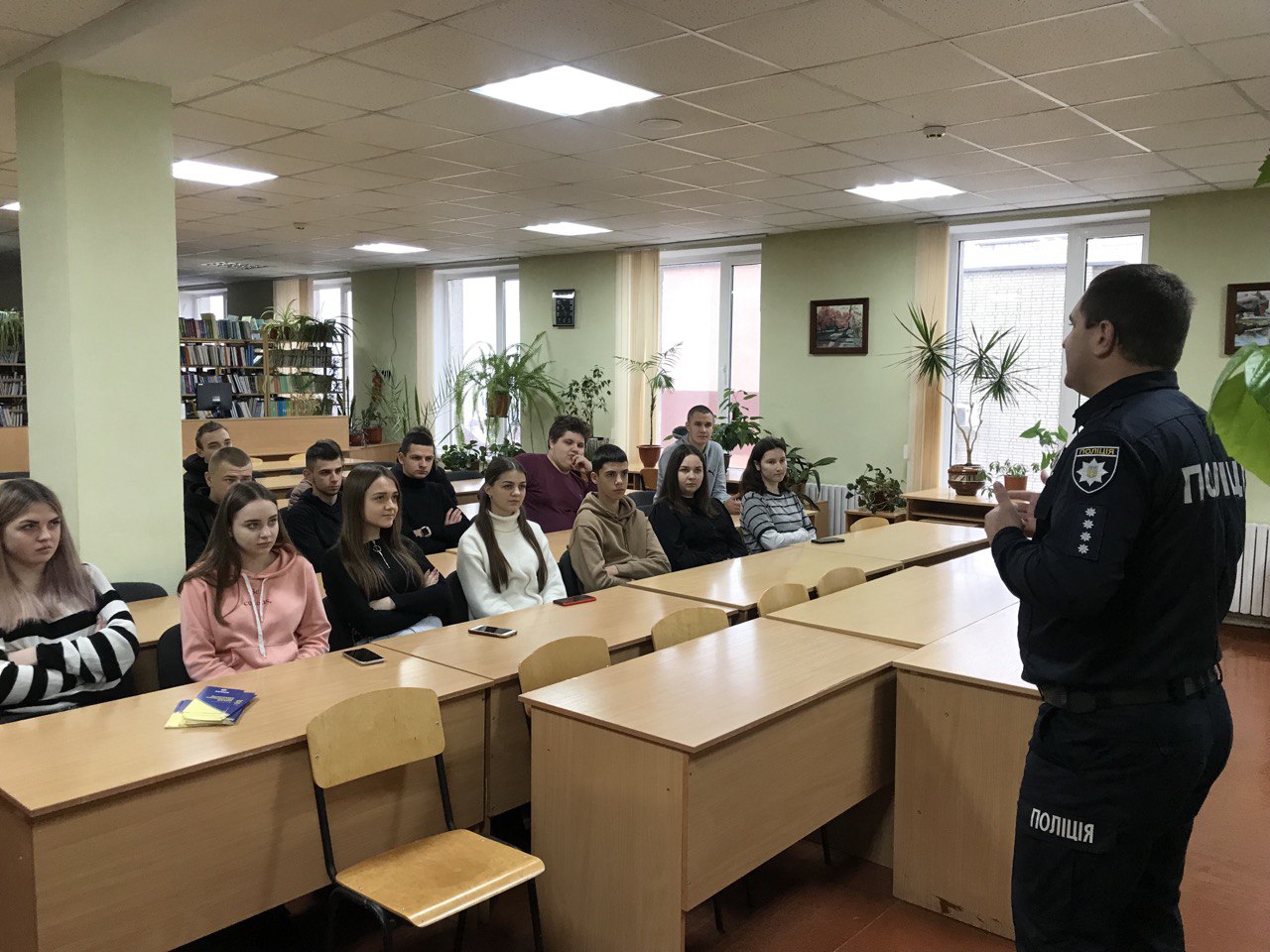 Валерій Кравчук – начальник сектору протидії домашнього насильства, розповів студентам спеціальності «Право» про роботу працівників поліції у боротьбі з домашнім насильством, про відповідальність кривдників за домашнє насильство, а також про інтерактивну виставку «Річ у тім», відсканувавши QR-коди на світлинах, представлених на виставці, можна побачити відеоролики, в яких відомі публічні особи розповідають про випадки домашнього насильства із застосуванням побутових речей.