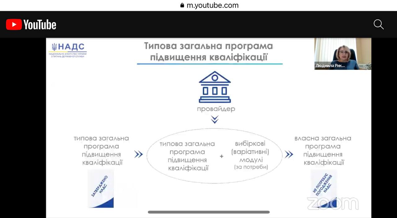 ⁃ Людмила Рикова, директор Генерального департаменту з питань професійного розвитку державних службовців та посадових осіб місцевого самоврядування НАДС, повідомила особливості правового регулювання системи професійного навчання публічних службовців;