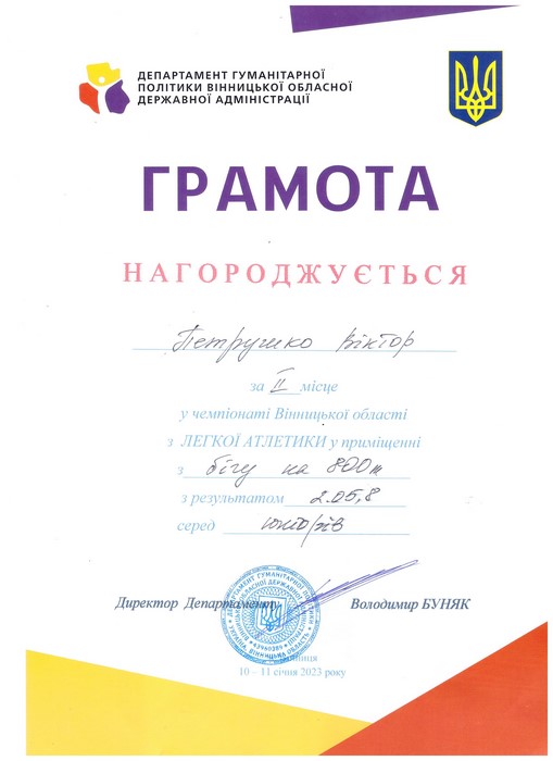 Участь у чемпіонаті Вінницької області з легкої атлетики у приміщенні