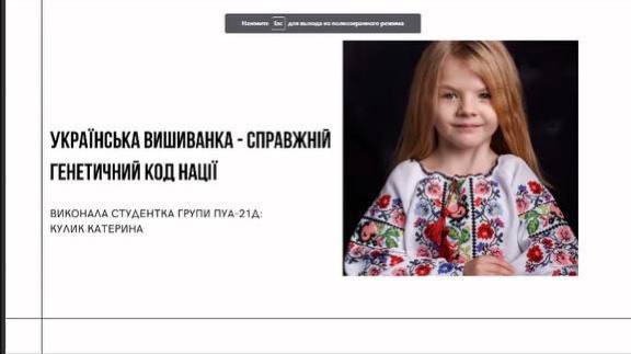 Серед актуальних доповідей було заслухано доповідь Катерини Кулик, студентки групи ПУА-21д на тему «Українська вишиванка – справжній генетичний код нації», науковий керівник - канд. екон. наук, доцент Наталя Махначова.