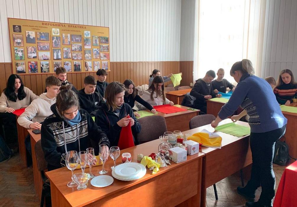 З нагоди Дня всіх закоханих, 14 лютого 2023 року для учнів 9-Б та 10-А класу КЗ «Вінницький ліцей №10» асистент кафедри туризму та готельно-ресторанної справи Олена Пахомська провела майстер-клас «Святкове тематичне сервірування столу та техніки складання столових серветок». Мета заходу - розвиток естетичного смаку, моторики рук, рухової та емоційної пам'яті, формування знань про столовий посуд, приладдя, столову білизну, вміння підбирати їх у процесі сервірування тематичного святкового столу.