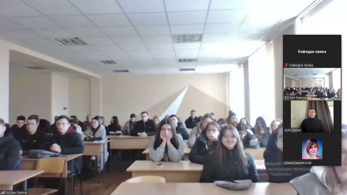28 лютого 2023 року доцент кафедри права Руслан Раімов провів для студентів спеціальності «Право» Workshop «10 питань до фахівця» зі слідчим Державного бюро розслідувань. Мета заходу – ознайомити студентів із особливостями роботи слідчого ДБР відповідно до кримінального законодавства України. Було розглянуто питання правового статусу Державного бюро розслідувань, повноваження слідчого та вимоги до кандидата на посаду слідчого ДБР. Під час спілкування зі студентами слідчий ДБР надав відповіді на їхні питання.