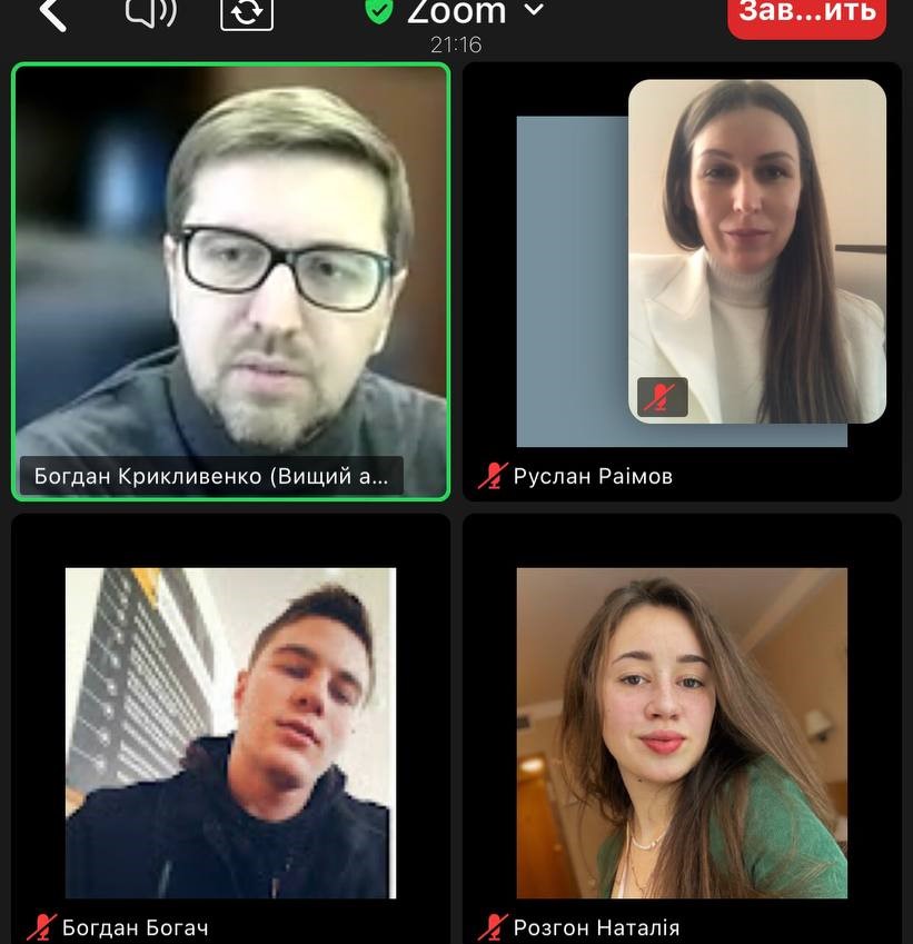 1 березня 2023 року відбулося відкрите засідання наукового гуртка «Феміда» (керівник кандидат юридичних наук, доцент кафедри права Білоус Ірина) на тему «Антикорупційні органи в Україні: розподіл обов’язків та повноважень». Члени гуртка обговорили питання про місце і роль антикорупційних органів в Україні, розподіл їх обов’язків та повноважень. Також в режимі он-лайн на засіданні гуртка був присутній Богдан Крикливенко – керівник апарату Вищого антикорупційного суду (ВАКС), який розповів про місію ВАКС, яка полягає в здійсненні справедливого правосуддя в кримінальних провадженнях щодо корупційних злочинів, про повноваження суду, про те, як відбувається конкурс на посади суддів, про статистику розгляду справ ВАКС. Наприкінці зустрічі Богдан Крикливенко відповів на запитання студентів.