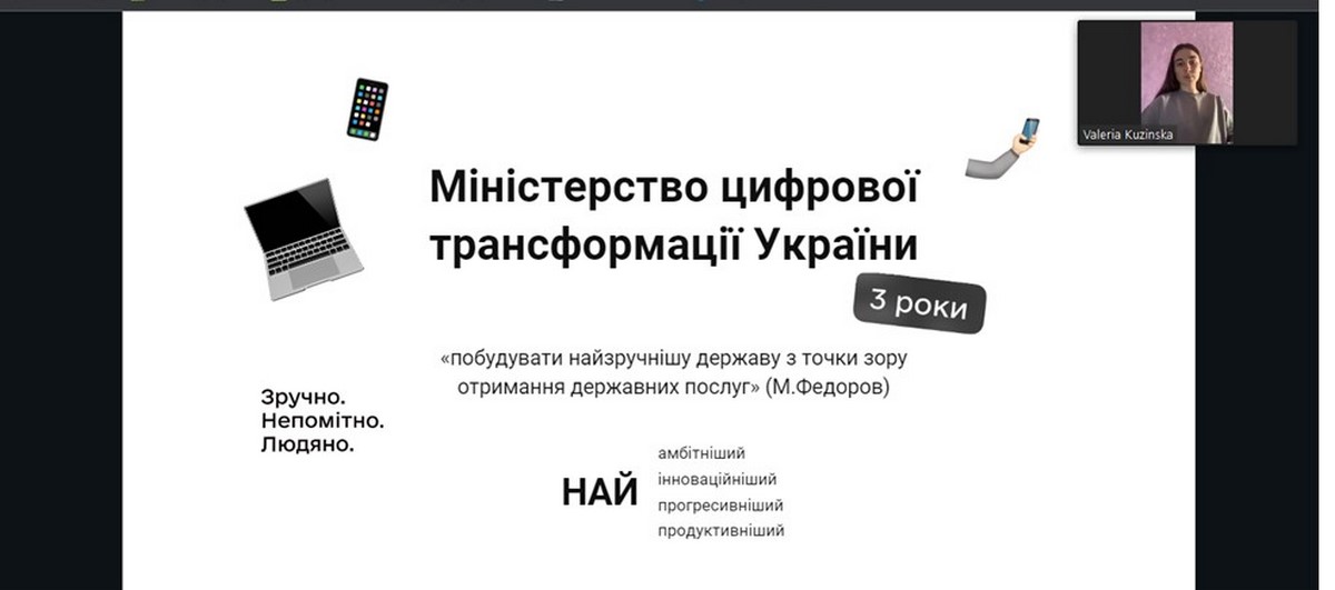 2. «Нова цифрова реальність. Мінцифра 2022-2023» – доповідачка Валерія Кузінська (гр. ПУА-41д);