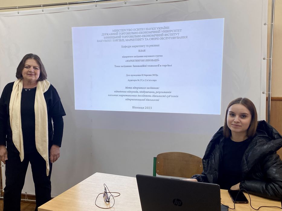 2 березня 2023 року в рамках ХІ Фестивалю студентської науки відбулося відкрите засідання наукового гуртка «Маркетингові інновації» (керівник – старший викладач Людмила Середницька), учасниками якого були здобувачі освітнього ступеня «молодший бакалавр», «бакалавр», ОП «Маркетинг» денної форми навчання.