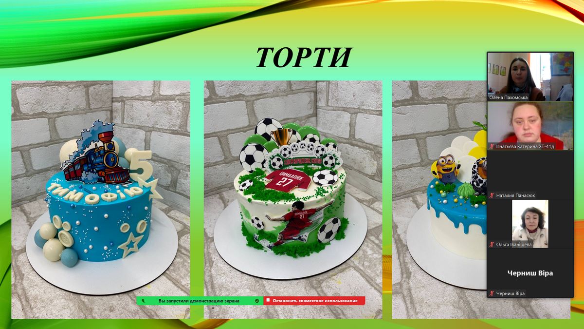 - Кліпінська Анастасія (гр. ХТ-31д) – доповідь на тему «Торти-камені, торти букети та геометричні торти»;