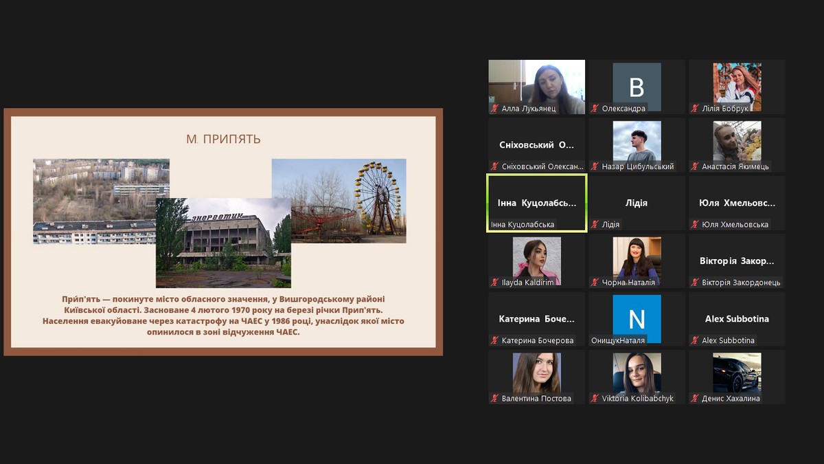 3 березня 2023 року відбулося засідання наукового гуртка кафедри туризму та готельно-ресторанної справи «Школа туристичної індустрії» на тему «Темний туризм: становлення та популярні напрямки» (керівник гуртка старший викладач Алла Лук'янець).
