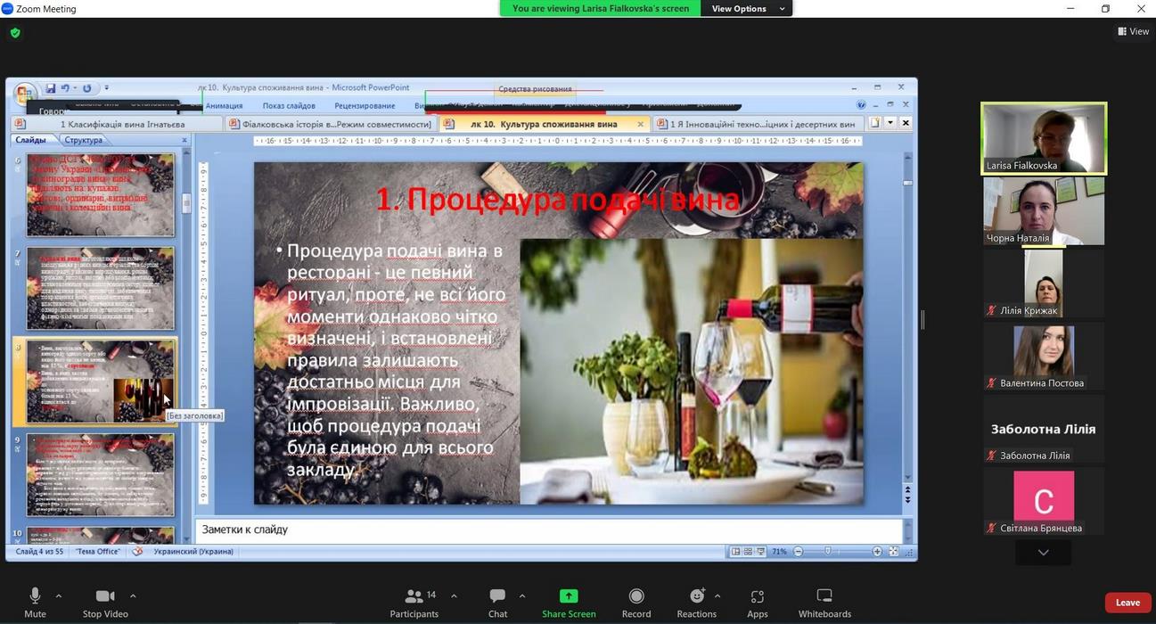 - Ігнатьєва Катерина (гр. ХТ-41 д) – з доповіддю на тему «Класифікація вин, їх подача та дегустація»;