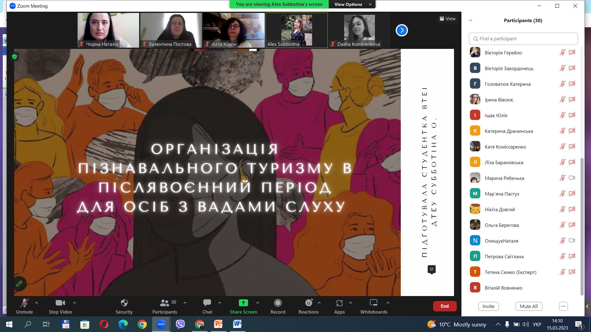 6. Олександра Субботіна, гр. Т-42д – доповідь на тему «Організація пізнавального туризму в післявоєнний період для осіб з вадами слуху на Вінниччині».