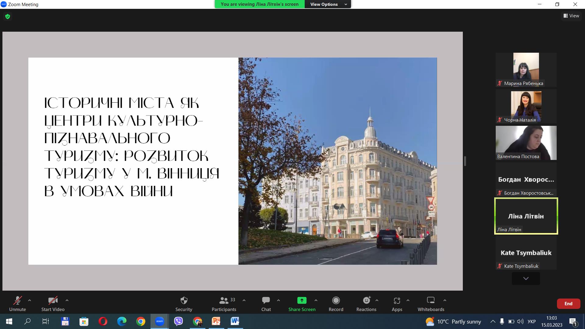 1. Ліна Літвін, гр. Т-42д – доповідь на тему «Історичні міста як центри культурно-пізнавального туризму: розвиток туризму у м. Вінниця в умовах війни».