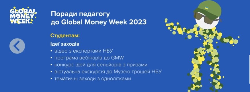 Global Money Week 2023 (Всесвітній тиждень грошей) — щорічна міжнародна освітня кампанія, метою якої є розвиток фінансової свідомості дітей та молоді, формування знань, умінь, поведінки та ставлення, необхідних для прийняття розумних та зважених фінансових рішень, що дасть змогу досягти фінансового добробуту та стійкості.