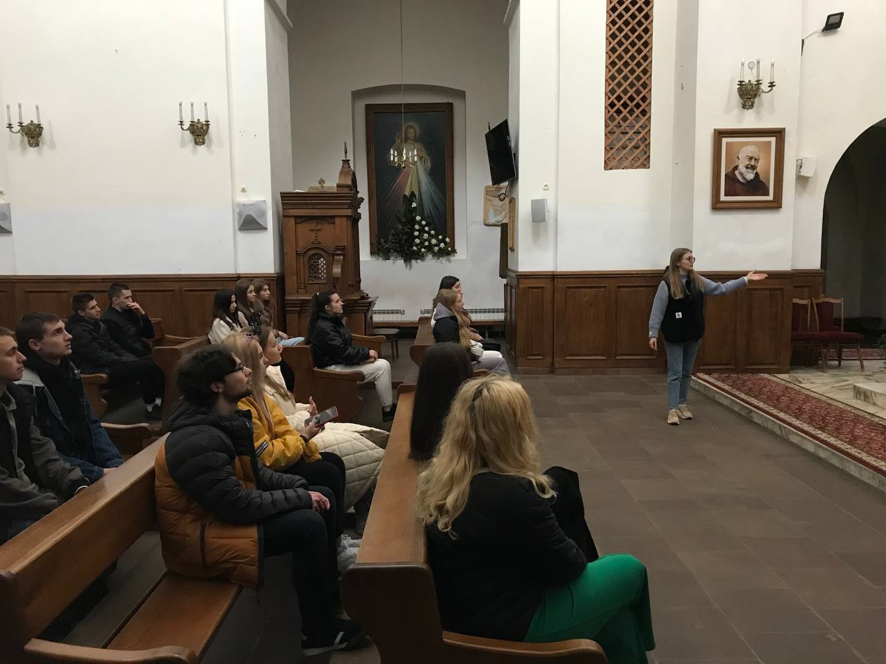27 квітня 2023 року студенти 2 курсу спеціальності «Право», разом із куратором доцентом кафедри права Іриною Білоус відвідали екскурсію «Вінницькі підземелля». Екскурсія розпочалася із ознайомленням з історією монастиря францисканців-капуцинів, який був зведений у 1745-1760 роках. Після чого гід пані Яна продовжила екскурсію по Храму Пресвятої Діви Марії Ангельської, де змогли побачити фотогалерею монастиря, макет монастирських приміщень, історичні келії. Потім учасники екскурсії спустилися до підземелля Храму, де ознайомилися із призначенням кімнат підземелля та прогулялися по підземному ходу.