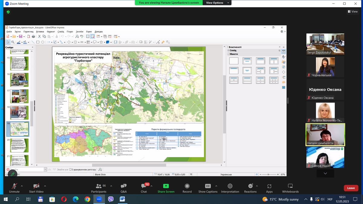 Участь у круглому столі, що проходив у змішаному форматі, взяли велика кількість фахівців сфери зеленого туризму, підприємництва та кластеризації в зеленому туризмі, які презентували результати проведеного дослідження та історії успіху, які описують, наскільки гнучким і стійким може бути підприємництво українського сільського туризму.