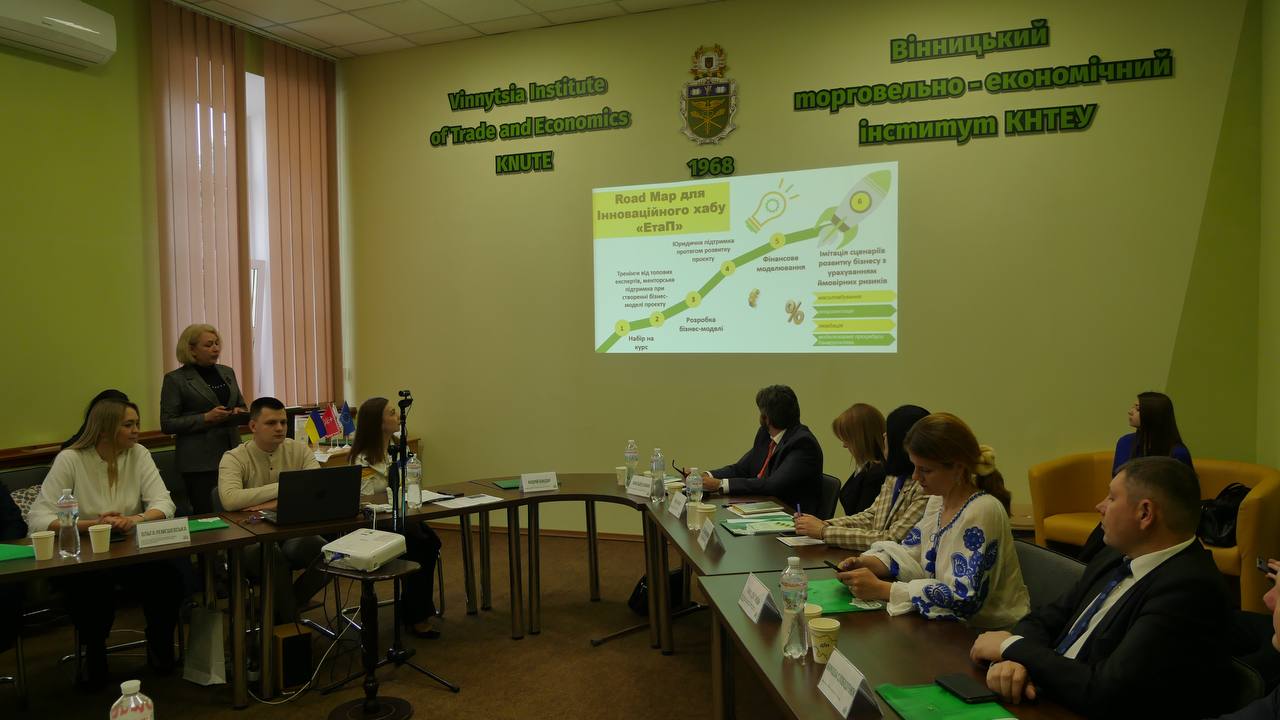 17 травня 2023 року відбулося урочисте відкриття Інноваційного хабу «ЕтаП» на базі Вінницького торговельно-економічного інституту ДТЕУ. В рамках проєкту передбачається створення майданчика для популяризації підприємницької культури та креативного мислення через стимулювання молодіжного підприємництва завдяки синергії академічних знань економічного, правового блоків та практичного експертного досвіду. Було презентовано етапи роботи інноваційного хабу, особливості його реалізації та очікувані результати. В рамках відкриття інноваційного хабу було підписано 5 меморандумів про співпрацю ВТЕІ ДТЕУ з: ГО "МІЖНАРОДНА АСОЦІАЦІЯ МАЙБУТНЬОГО УКРАЇНИ", Господарським судом Вінницької області, Адвокатським бюро «ПІПКО І ПАРТНЕРИ», Вінницькою торгово-промисловою палатою та ТОВ «БЕЗБРЕНДУ СММ». Дякуємо партнерам за підтримку активної та ініціативної молоді та сподіваємося на подальшу плідну співпрацю!