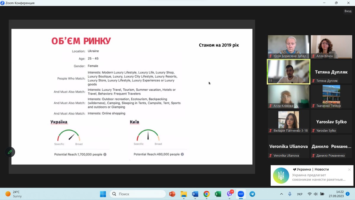Прослухана лекція дозволила здобувачам вищої освіти закріпити компетентності та результати навчання, сформовані у ході вивчення освітніх компонентів «Організація туризму», «Стратегічний маркетинг в туризмі», «Стратегічний маркетинг та менеджмент в готельному та ресторанному бізнесі». Тож дякуємо Андрію Родкіну за змістовну лекцію, а також колегам із Державного торговельно-економічного університету – за можливість долучитися до її прослуховування!