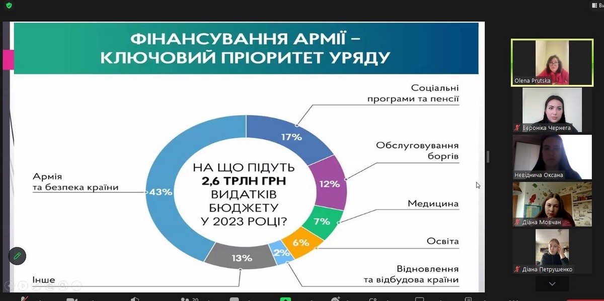 20 листопада відбулося засідання наукового гуртка кафедри фінансів «Актуальні проблеми модернізації фінансової системи» на тему: «Управління публічними фінансами в умовах воєнного стану» (науковий керівник професор Прутська О.О.).