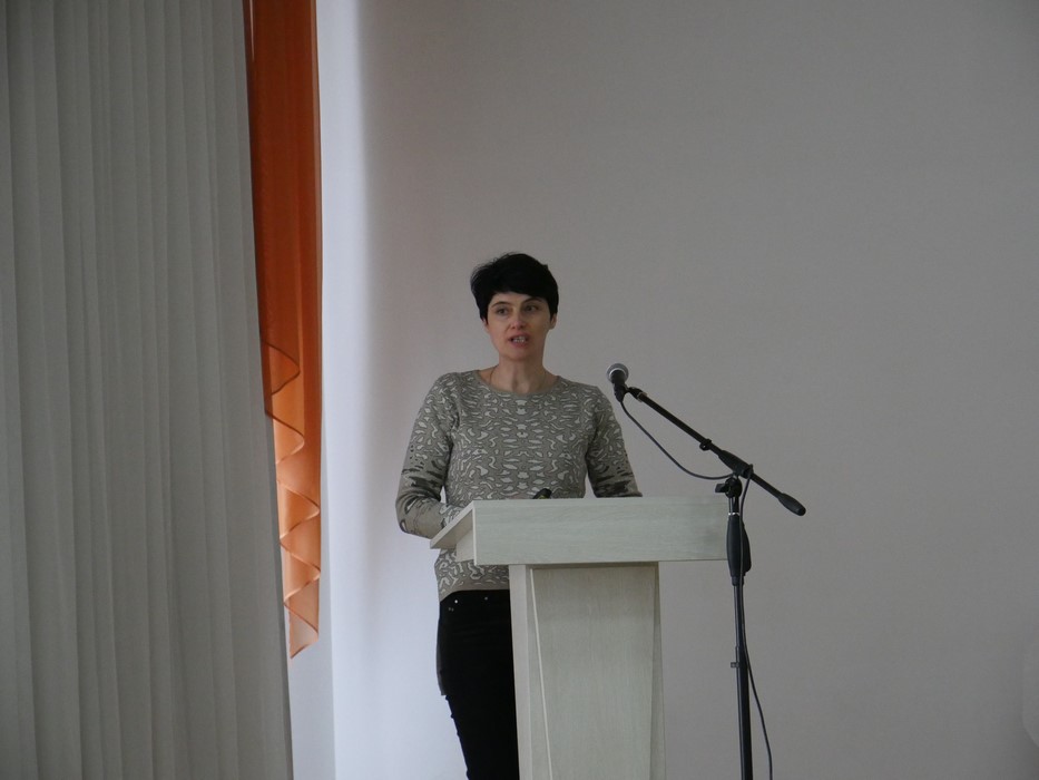 Роль органів місцевої влади у досягненні цілей сталого розвитку. Доповідачка: Наталія Замкова, доктор філософських наук, професорка, директор Вінницького торговельно-економічного інституту ДТЕУ, заслужений працівник освіти України, Голова постійної комісії Вінницької обласної Ради з питань освіти, релігії, культури, молоді та спорту.