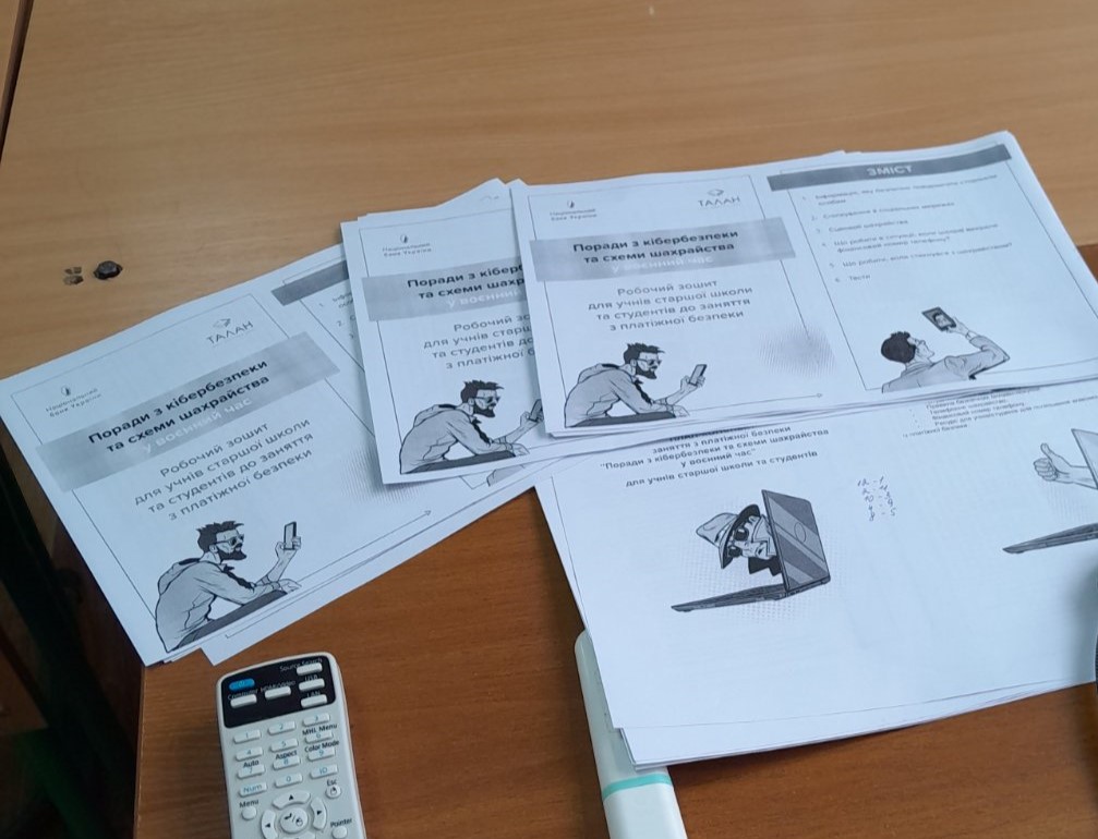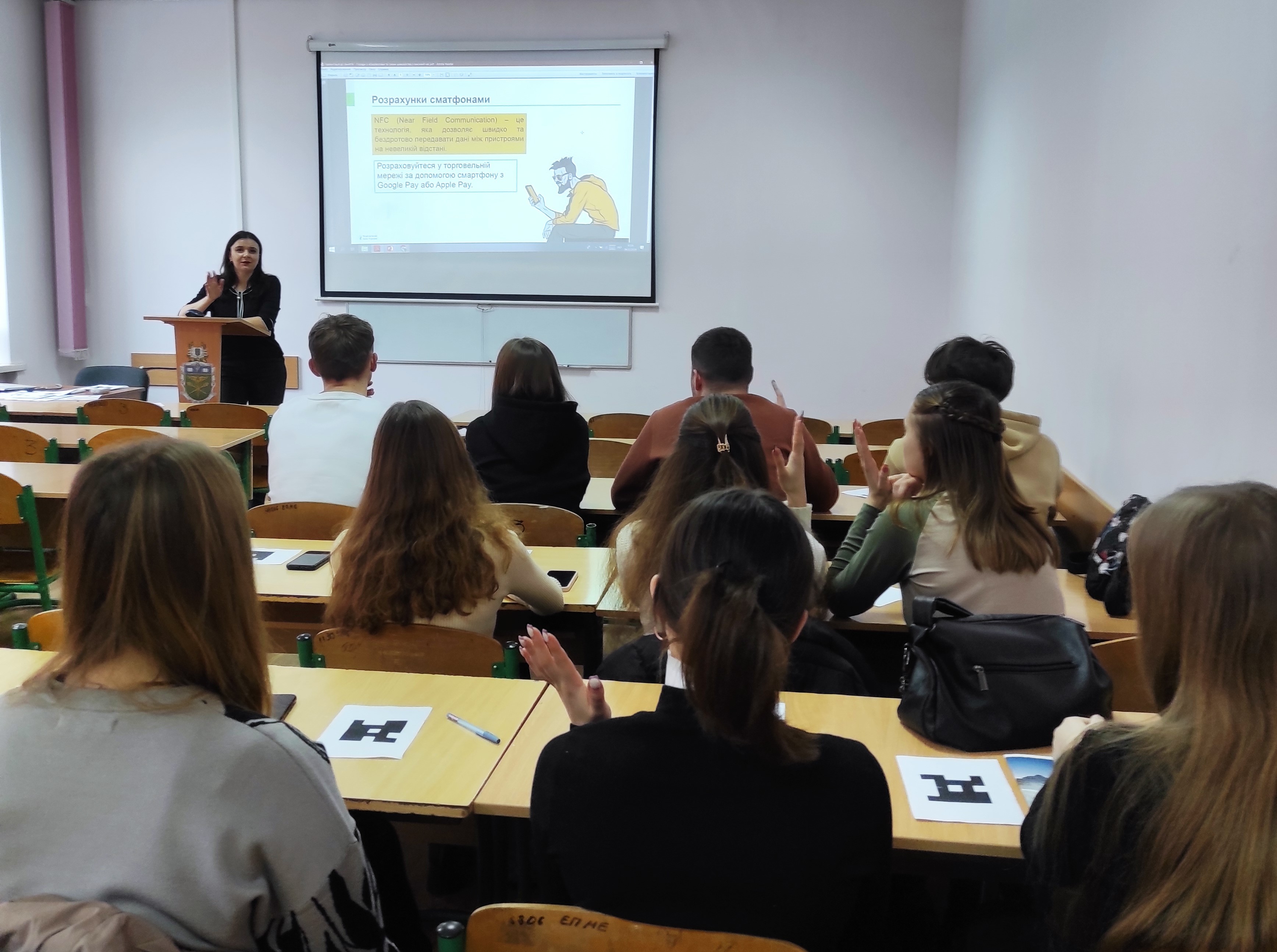 Матеріали надано експертами Національного банку України в межах Всеукраїнської інформаційної кампанії з протидії платіжному шахрайству. На занятті здобувачі вищої освіти дізналися про заходи власної кібербезпеки та нові схеми шахрайств у воєнний час. Виконували практичні завдання та тестування для визначення власної обізнаності, щодо захисту від злочинних дій шахраїв через інтернет. Будьмо уважними та відповідальними за свої дії!