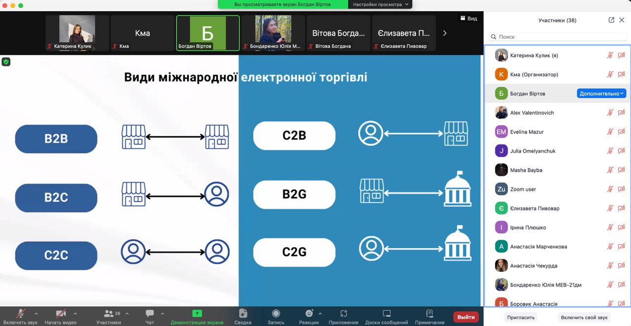 В наукових дискусіях активну участь брали здобувачі вищої освіти спеціальностей 073 «Менеджмент», 281 «Публічне управління та адміністрування», 292 «Міжнародні економічні відносини» та 232 «Соціальне забезпечення». Цікаві та інформативні доповіді презентували Кулик Катерина (ПУА-31д), Вітова Богдана (МЕВ-31д) та Віртов Богдан (МЗД-31д).
