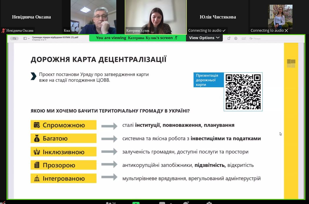 Підводячи підсумки завідувач кафедри менеджменту та адміністрування Наталя Махначова та керівник клубу Едуард Ковтун окреслили перспективи та напрямки розвитку громад після перемоги України.