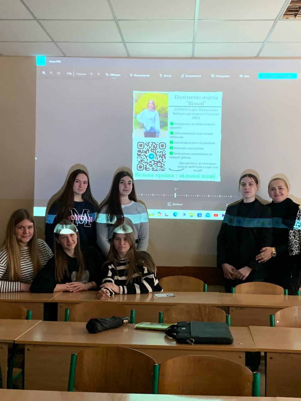29 березня 2024 року здобувачі освітнього ступеня «бакалавр» спеціальності «Право», ОП «Право» групи ПР-14д спільно з кандидатом юридичних наук, доцентом кафедри права Костюк Наталією в рамках вивчення практичних складових освітнього компоненту «Конституційне право» провели ділову гру «Вибори Президента України».