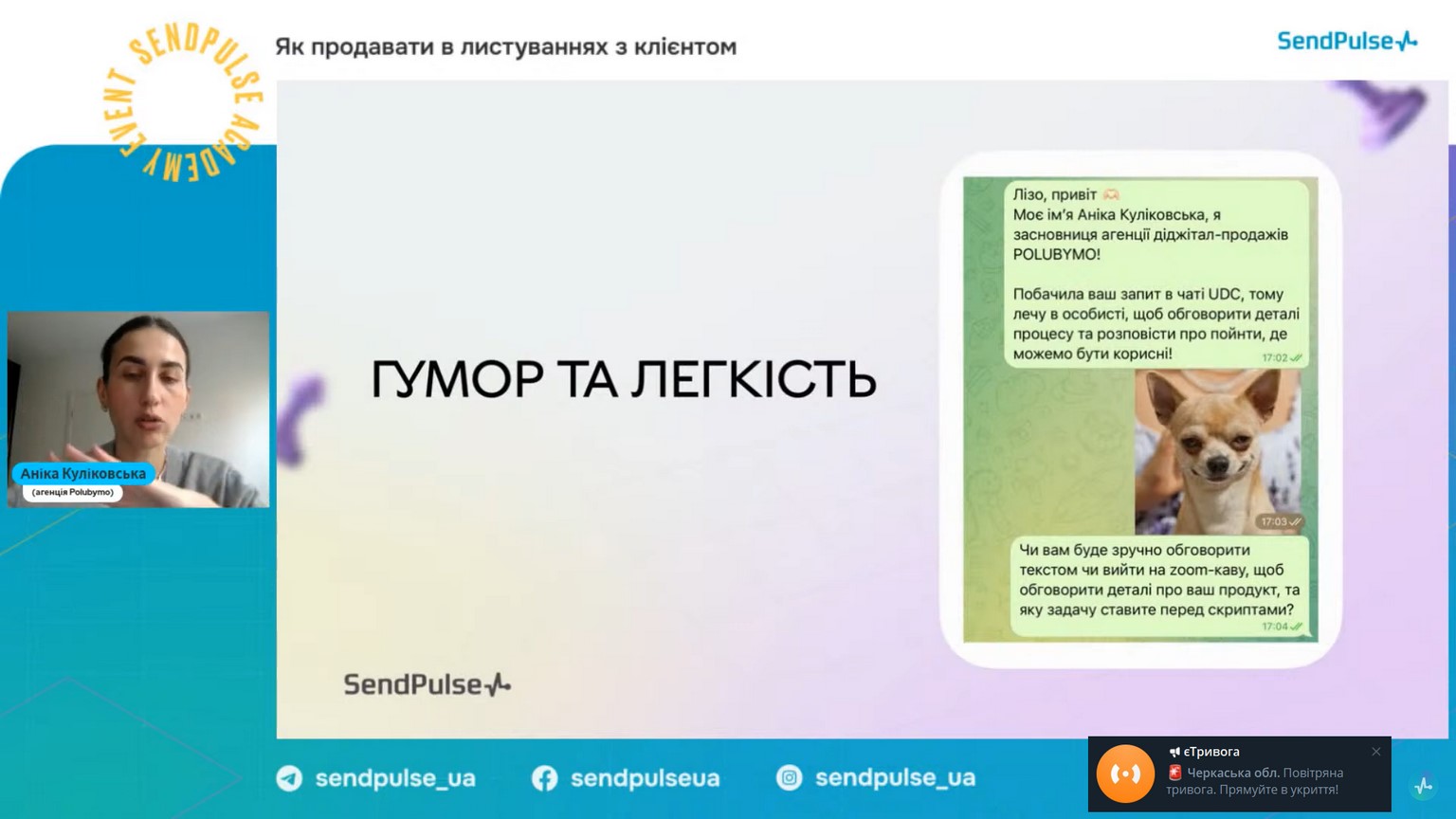 - Реальні приклади продажів через листування: спікерка наочно продемонструвала, як використовувати листування для успішного закриття угод.