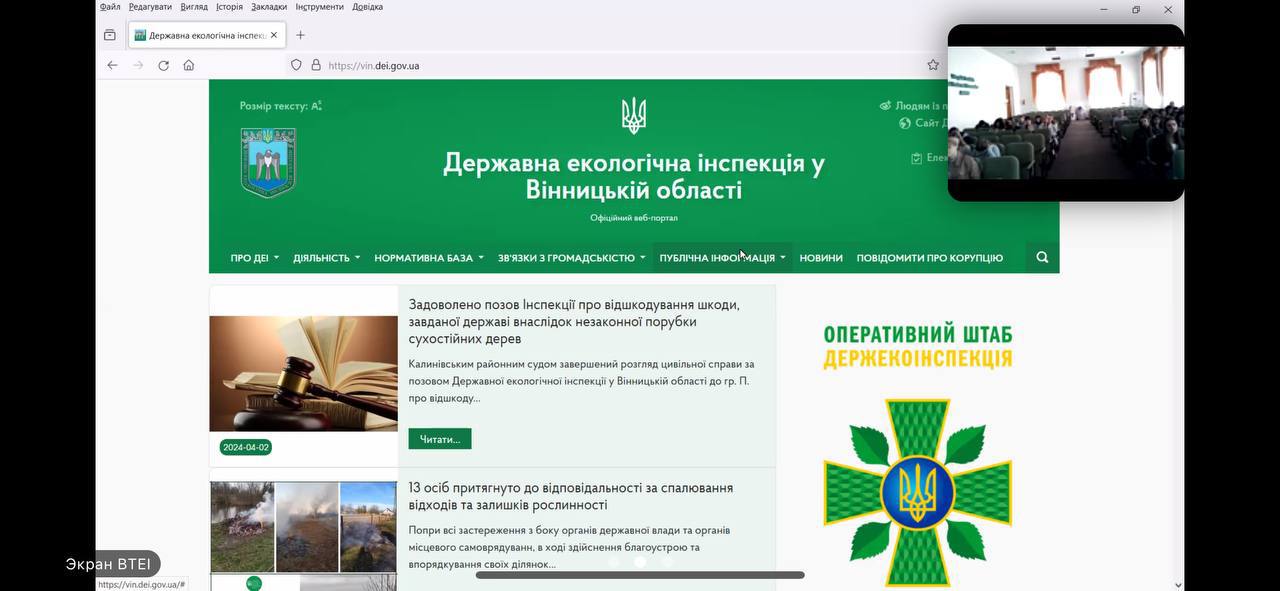 Гостьова лекція заступника начальника Державної екологічної інспекції у Вінницькій області Ющука Олега Дмитровича відбулась для здобувачів вищої освіти