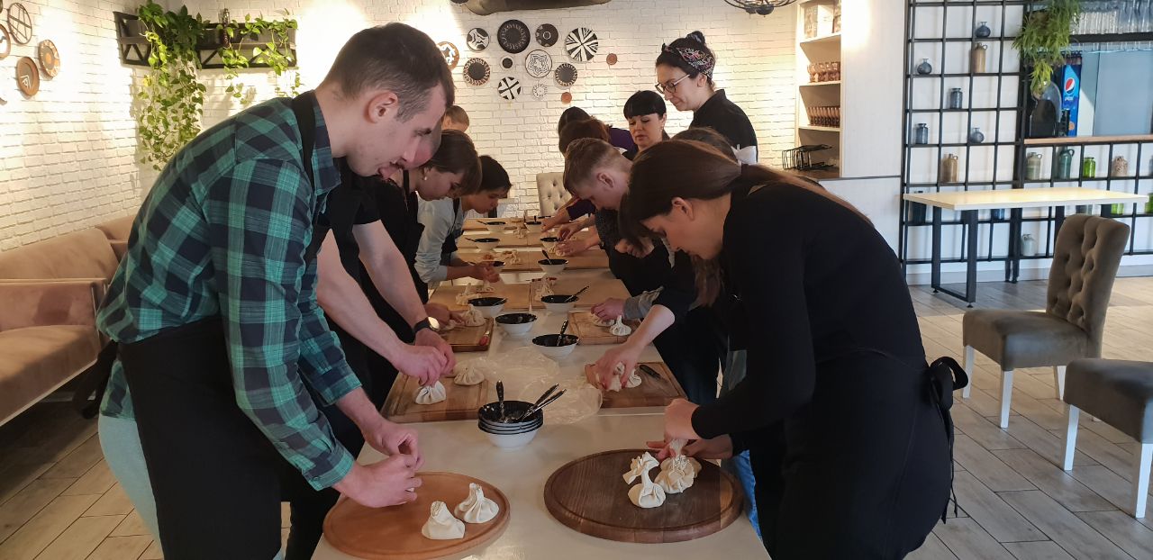 Учасники майстер-класу дізналися про історію походження хінкалі та місця страви на грузинському столі, секрети приготування тіста та начинки, особливості подачі страви та її споживання. Традиційно, майстер-клас закінчився дегустацією приготованих власними руками кулінарних шедеврів в банкетній залі ресторану.