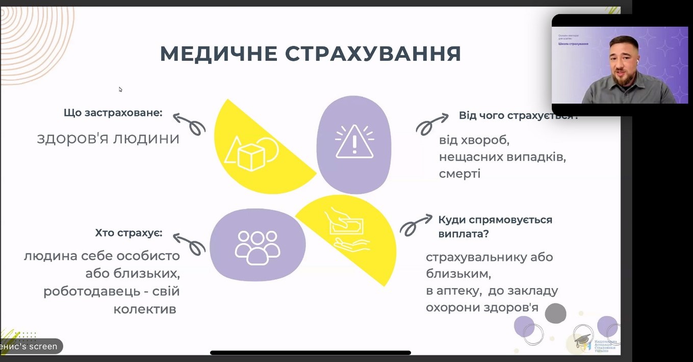 Школа страхування для освітян розроблена фахівцями Національного банку України із залученням провідних експертів страхового ринку України. Лекцію проводив Денис Ястреб - генеральний директор Національної асоціації страховиків України.