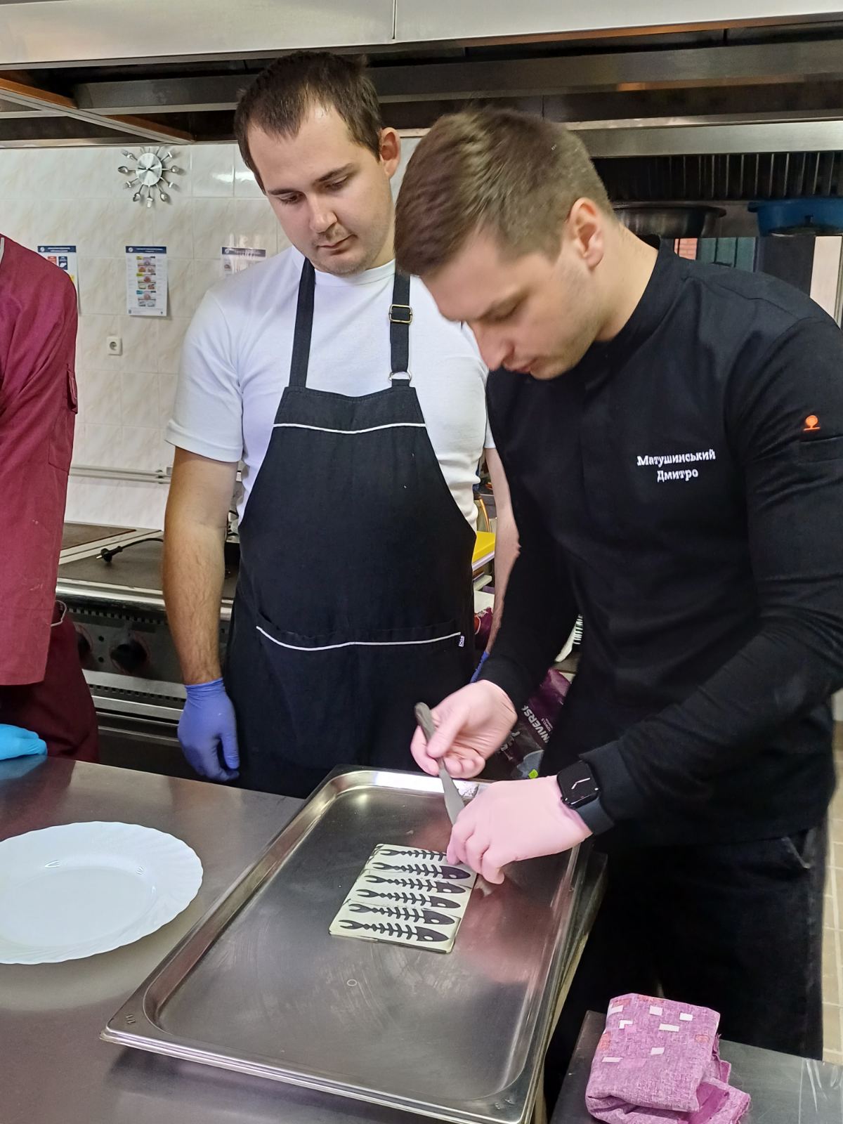 Майстер-клас дав можливість здобувачам вищої освіти набути певних практичних вмінь, відчути незвичне поєднання смаків риби та птиці запропонованої шефом страви.