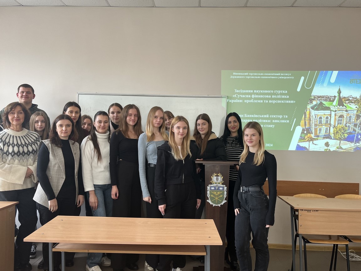 31 жовтня 2024 року науково-педагогічними працівниками кафедри фінансів ВТЕІ ДТЕУ було організовано та проведено засідання наукового гуртка «Сучасна фінансова політика України: проблеми та перспективи» на тему: «Банківський сектор та монетарна політика: виклики воєнного стану» (керівник гуртка – канд.екон.наук Наталія Тімошенко).