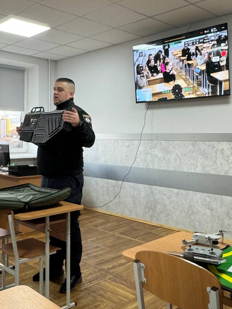 На завершення лейтенант поліції Павло Терешко ознайомив студентів із сучасними можливостями безпілотних літальних апаратів (БпЛА), підкресливши їхню роль у правоохоронній діяльності, зокрема у моніторингу місцевості та забезпеченні безпеки.