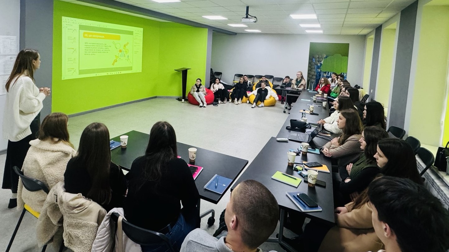 Лекцію про форми домашнього насильства й стереотипи щодо нього студентам і студенткам провела правозахисниця, викладачка ВТЕІ ДТЕУ, адвокатка Ірина Білоус. Разом із нею молодь переглянула відеоролики про це негативне соціальне явище, а відтак обговорила шляхи розпізнавання домашнього насильства та небезпечність його наслідків.