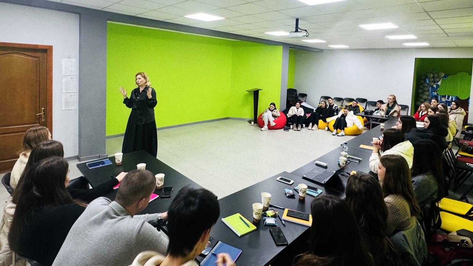 Голова та модераторка ГО «Мережа громадських організацій підтримки внутрішньо переміщених осіб в Україні», докторка економічних наук, професорка кафедри маркетингу та реклами Вінницького торговельно-економічного інституту ДТЕУ, керівниця Бізнес школи ВТЕІ ДТЕУ Альона Танасійчук допомогла студентству познайомитися з механікою створення соціальної реклами. За зразок узяли ролики UNFPA. Молодь розібралася з концептуальними особливостями такої реклами, майданчиками для її поширення та зайве впливу на поведінку людей у соціумі.