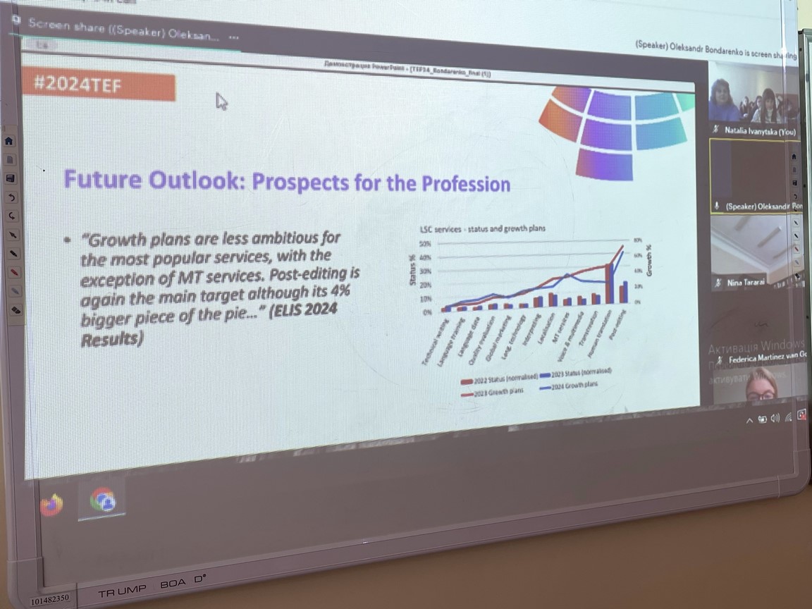 6 листопада 2024 року викладачі кафедри іноземної філології та перекладу та студенти ОП «Германські мови та літератури (переклад включно), перша – англійська» долучилися до роботи «Translating Europe Forum 2024». Започаткований у 2014 році в рамках проекту Translating Europe, Форум є платформою для постачальників мовних послуг, професійних асоціацій, фрілансерів, науковців і студентів та компаній, що займаються мовними технологіями.