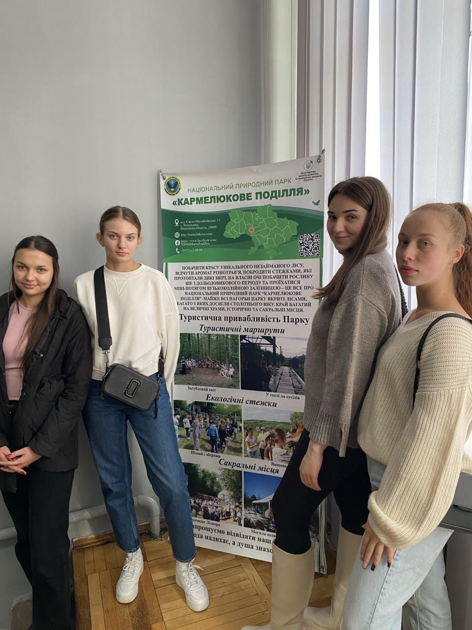 6 листопада 2024 року здобувачі вищої освіти за спеціальністю 242 «Туризм» ОС «бакалавр», у рамках вивчення освітнього компоненту «Туристичне краєзнавство» відвідали виставку «Національний природний парк «Кармелюкове Поділля» на базі Вінницького обласного краєзнавчого музею.