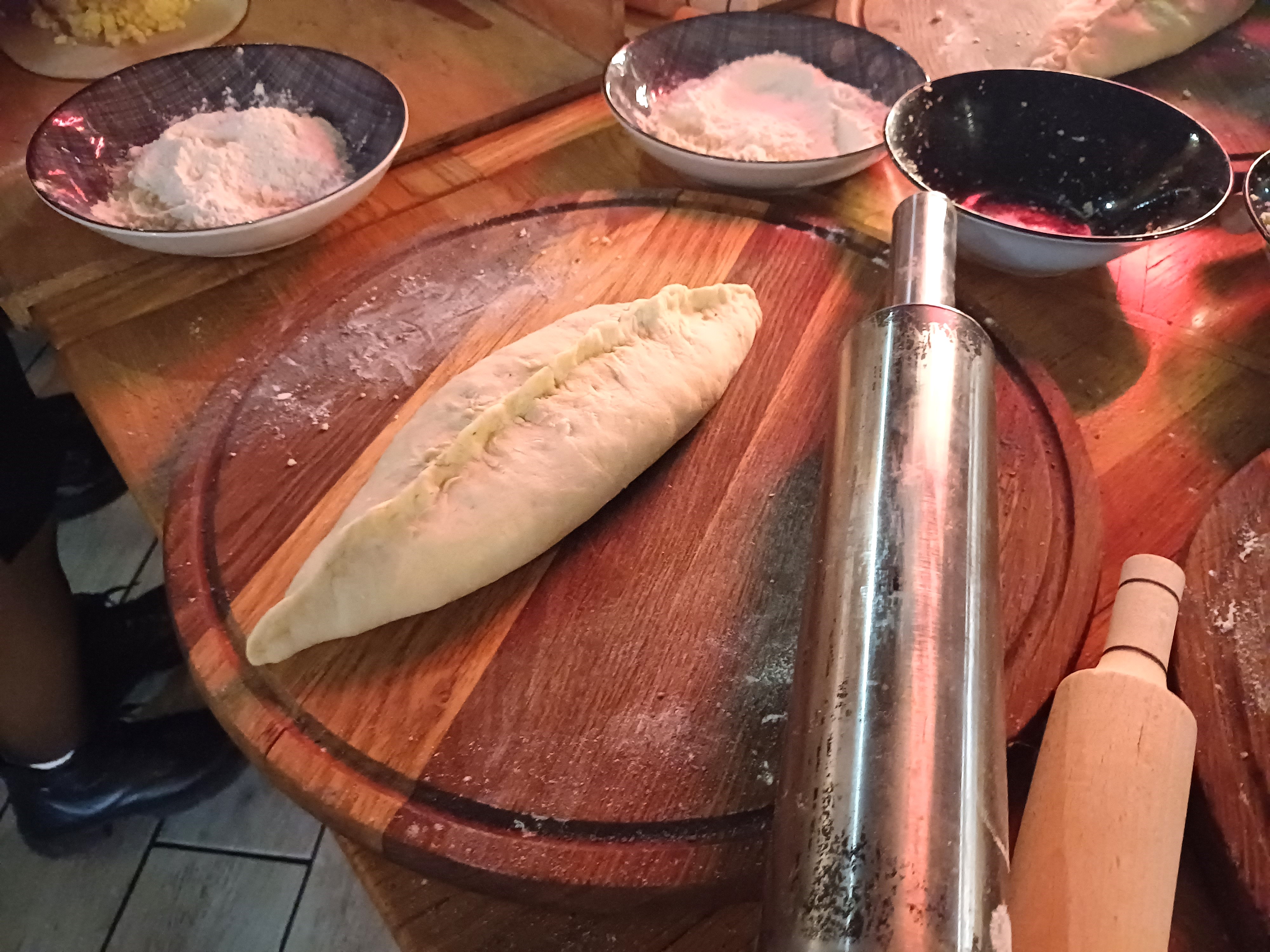 Учасники майстер-класу мали можливість відчути властивості особливого тіста та під керівництвом шеф-кухаря Андрія власними руками сформувати ідеальний «човник» з двома видами сиру – бринзою і сулугуні. Здобувачі дізналися особливості технологічного процесу приготування та випікання хачапурі, а після того, як страву дістали з печі, отримали можливість продегустували її.