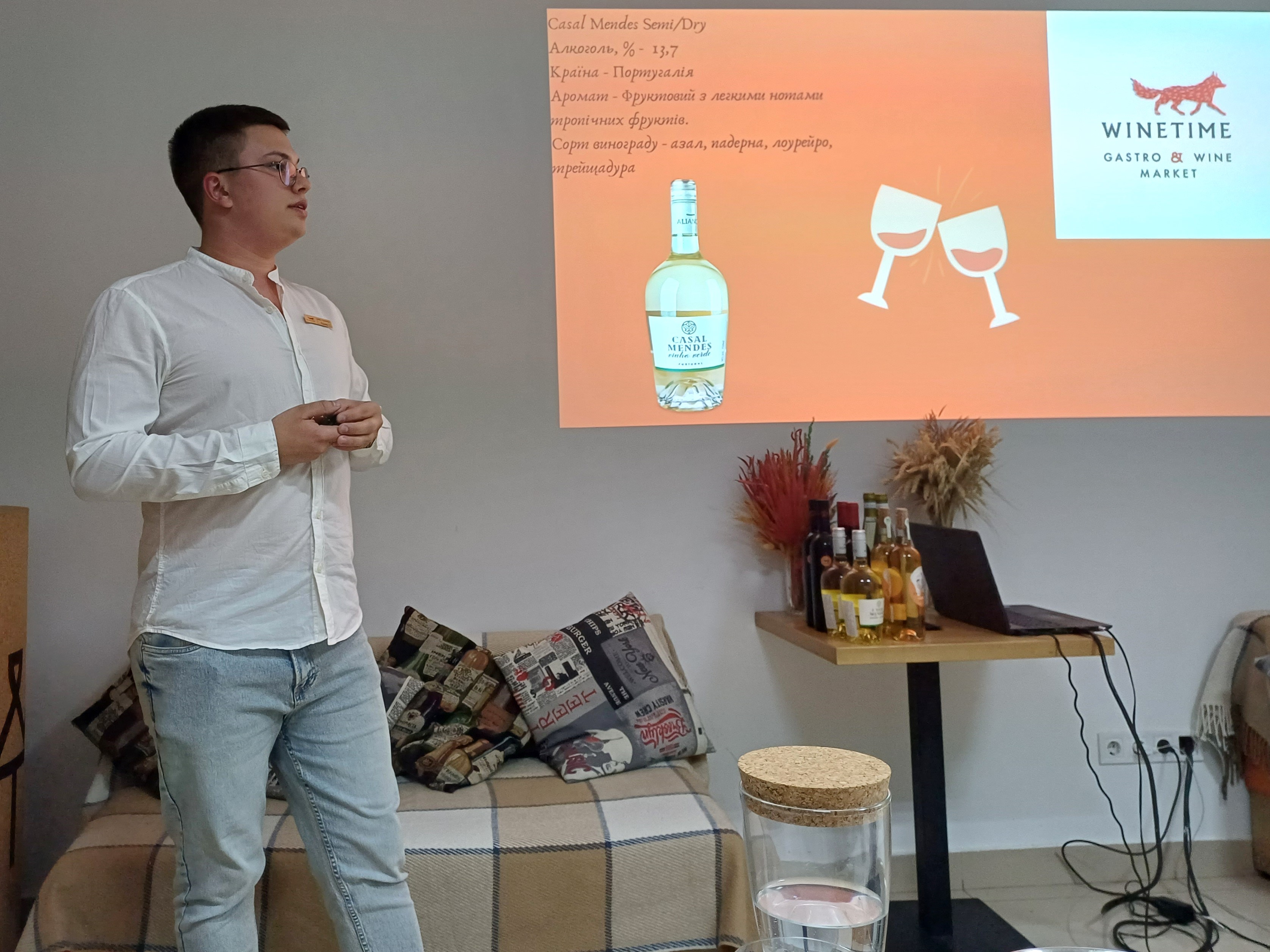 Дегустацію провів шеф-сомельє закладу Свинарчук Вадим, запропонувавши учасникам 5 різновидів вин країн Європи: Португалії, Італії, Франції та Грузії. Шеф-сомельє ознайомив присутніх із особливостями кожного вина, технологічними секретами їх виробництва, правилами дегустації та принципами еногастрономічних поєднань.