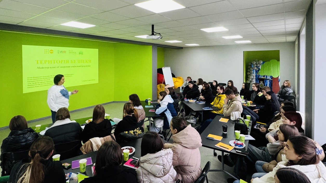Голова та модераторка ГО «Мережа громадських організацій підтримки внутрішньо переміщених осіб в Україні», докторка економічних наук, професорка кафедри маркетингу та реклами ВТЕІ ДТЕУ, керівниця Бізнес школи ВТЕІ ДТЕУ Альона Танасійчук провела майстер-клас із соціальної реклами, під час якого розповіла про важливість соціальної реклами, ознаки соціальної реклами, джерела поширення, особливості створення. Обговорила з учасниками шкідливість сексистської реклами та проблематику соціальної реклами для запобігання ДН і ГЗН, показала приклади реклами UNFPA.