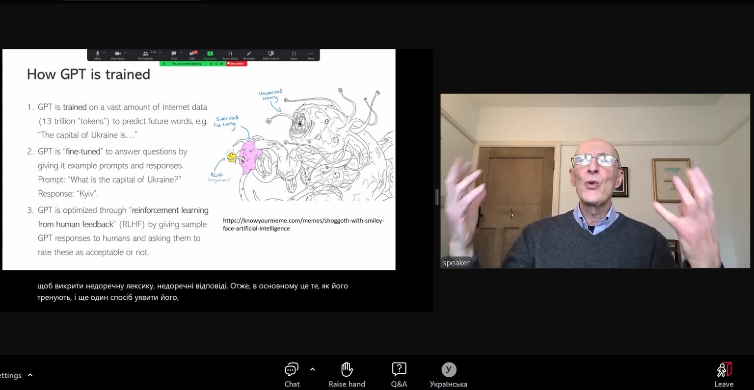 Протягом грудня 2024 року викладачі кафедри фізичного виховання та спорту ВТЕІ ДТЕУ долучилися до слухачів лекцій на тему: «Інтеграція штучного інтелекту в освіту – виклики та можливості» від провідних британських професорів організованих за ініціативи Національного університету фізичного виховання і спорту України в рамках серії заходів з інтеграції штучного інтелекту в освіту.
