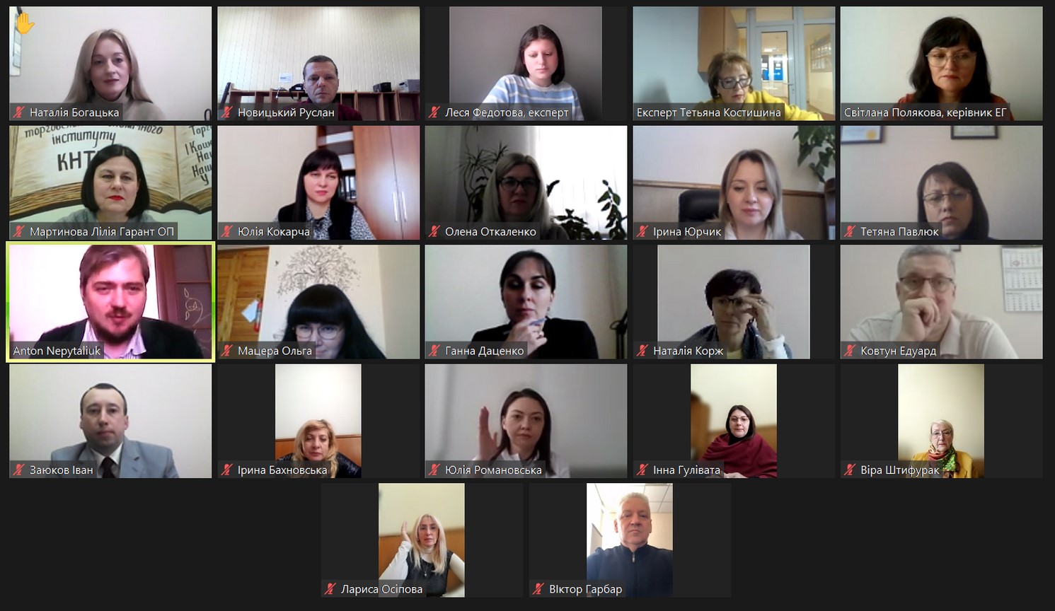 Відбулись зустрічі у дистанційному режимі на платформі Zoom із експертною групою, до складу якої входили Світлана Полякова, Тетяна Костишина, Леся Федотова та гарантом освітньої програми «Соціальне забезпечення» Лілією Мартиновою, адміністрацією, групою кадрового забезпечення освітніх компонентів, здобувачами вищої освіти, які навчаються на даній освітній програмі.