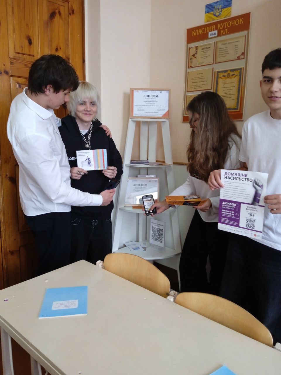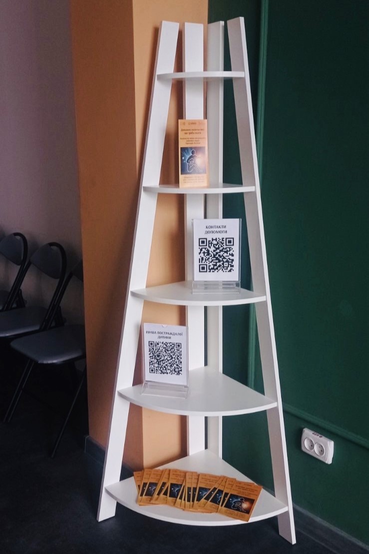 Звернувшись до даного куточка кожен зможе скористуватися QR кодами, де є посилання на контакти допомоги для постраждалих осіб від домашнього насильства та гендерно зумовленого насильства та ознайомитися із правами постраждалої дитини. А також в куточку можна взяти з собою брошуру, яка містить інформацію як розпізнати домашнє насильство, куди звернутися про допомогу.