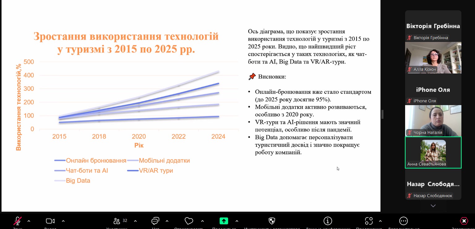 12 березня 2025 року на платформі ZOOM відбулось відкрите засідання дискусійного клубу ««Індустрія туризму та гостинності» на тему «Інноваційний розвиток в сфері туризму та гостинності».