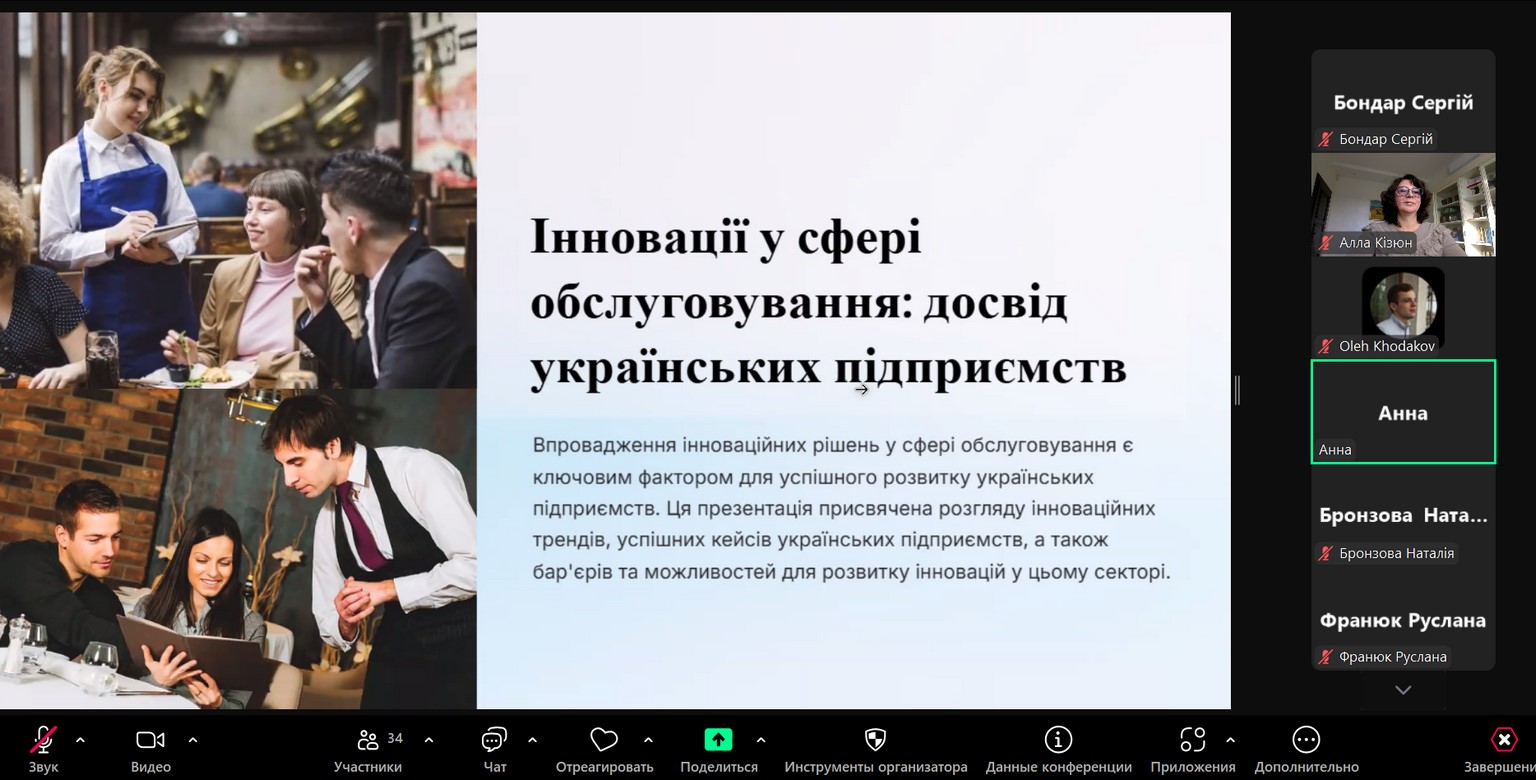 Саган Анна, здобувач вищої освіти ОС «магістр» ОП «Готельно-ресторанна справа» групи ГРС-11д(м) з доповіддю «Інновації у сфері обслуговування: досвід українських підприємств»;