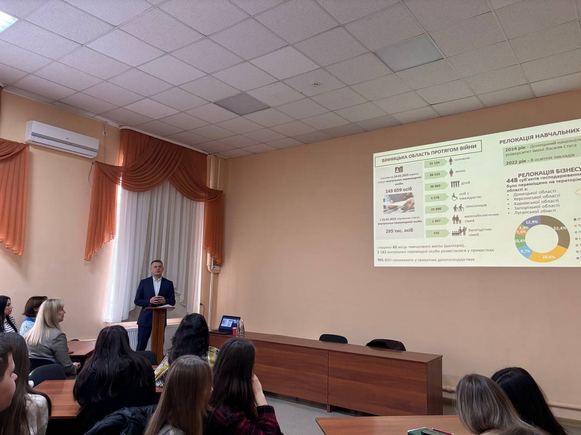 19 березня 2025 року в рамках ХІІІ Фестивалю студентської науки директором Департамену міжнародного співробітництва та регіонального розвитку Вінницької обласної військової адміністрації Цехановським Ігорем Леонідовичем було проведено семінар на тему «Розвиток міжнародної співпраці та інвестиційної політики Вінницького регіону». Метою заходу стало висвітлення питань розвитку міжнародної співпраці та інвестиційної політики регіону.