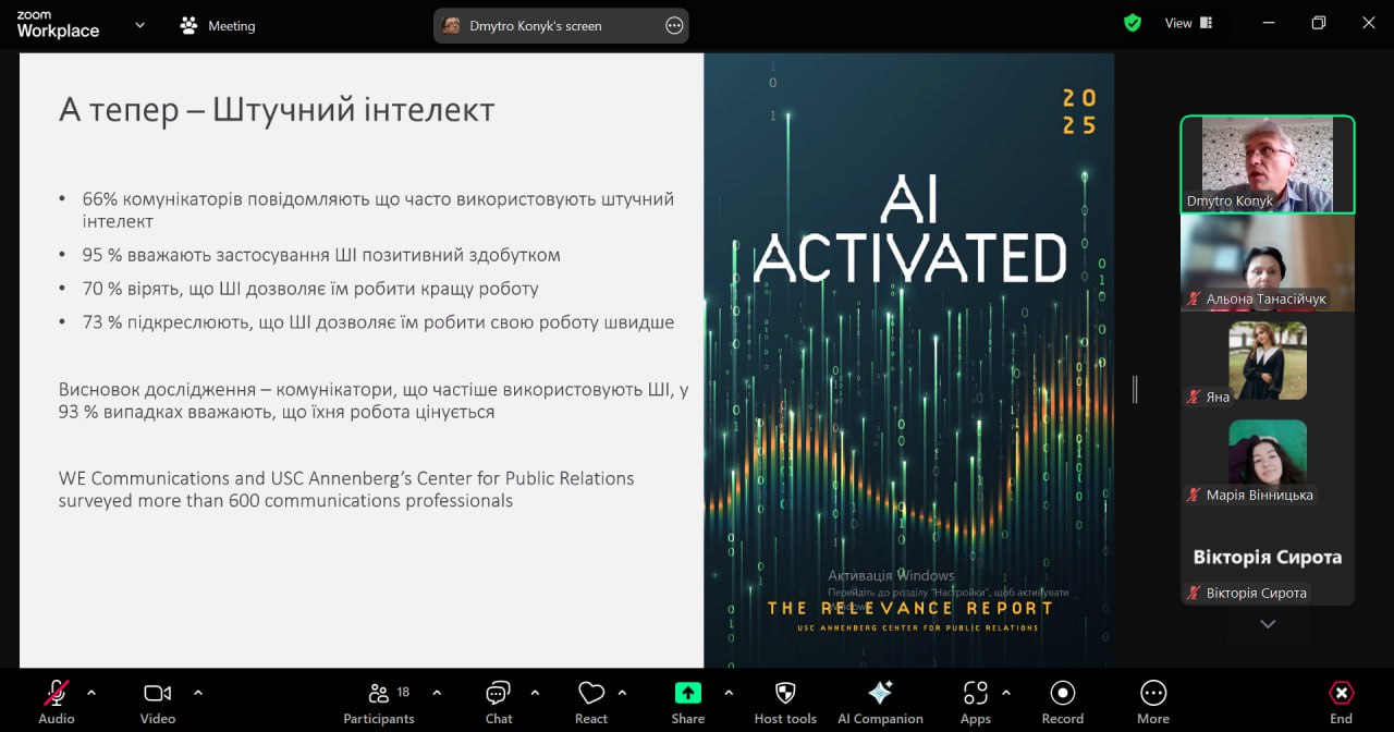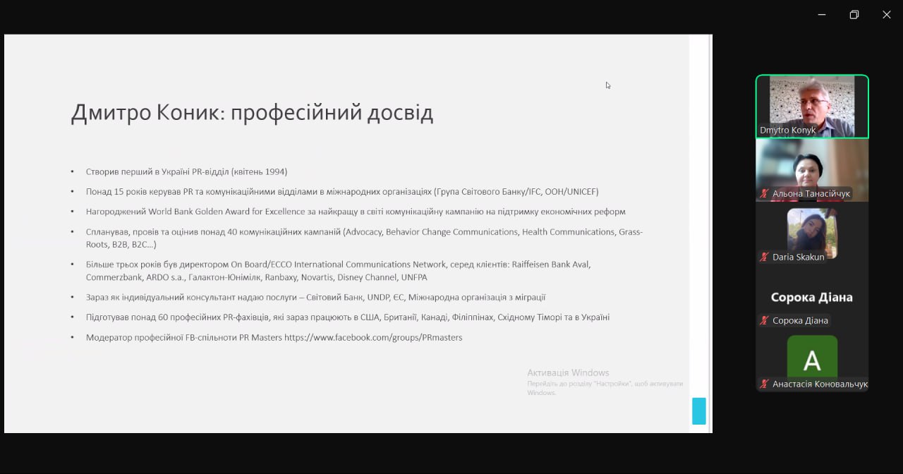 Щиро дякуємо Дмитру Леонідовичу Конику за цікаву й змістовну лекцію, яка стала справжнім натхненням для майбутніх фахівців у сфері комунікацій!