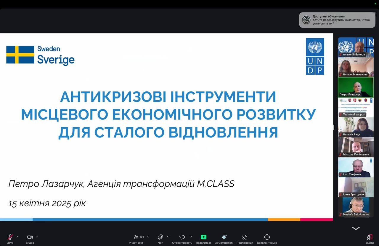 Участь у Міжрегіональному вступному онлайн семінарі «Антикризові інструменти місцевого економічного розвитку для сталого відновлення»