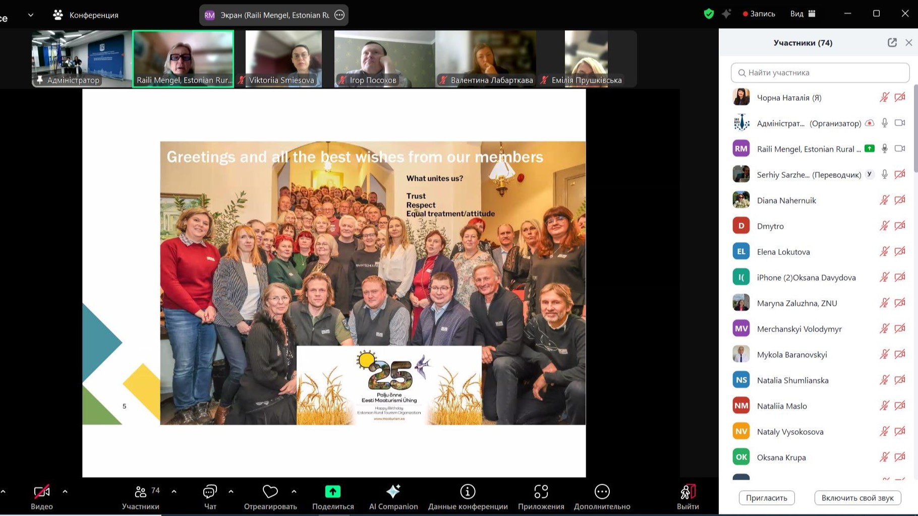 28 квітня 2025 року науково-педагогічні працівники кафедри туризму та готельно-ресторанної справи взяли участь у конференції «Партнерство як інструмент експорту локальних продуктів з сільських територій України», яка відбулася за підсумками виконання міжнародного проєкту «Створення культури партнерства та розвиток спільних місцевих продуктів для підвищення експортної спроможності малого бізнесу на прифронтових та прикордонних сільських територіях» за фінансової підтримки Естонського центру міжнародного розвитку.