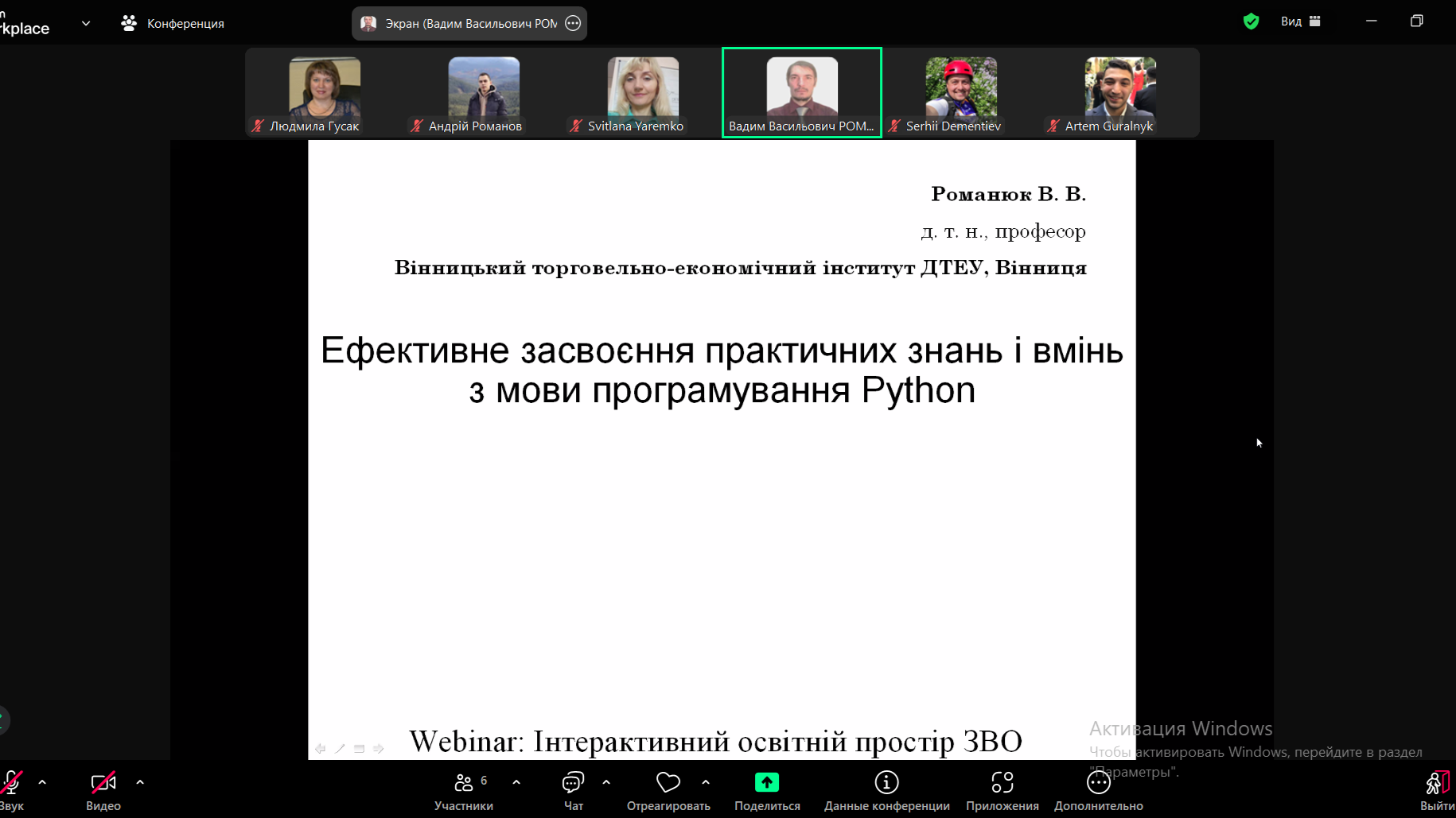 Професором кафедри Вадимом Романюком були висвітлені аспекти методології ефективного засвоєння практичних знань та вмінь здобувачами вищої освіти з мови програмування Python, доктором технічних наук, професором кафедри інформаційних систем та технологій ВТЕІ ДТЕУ.