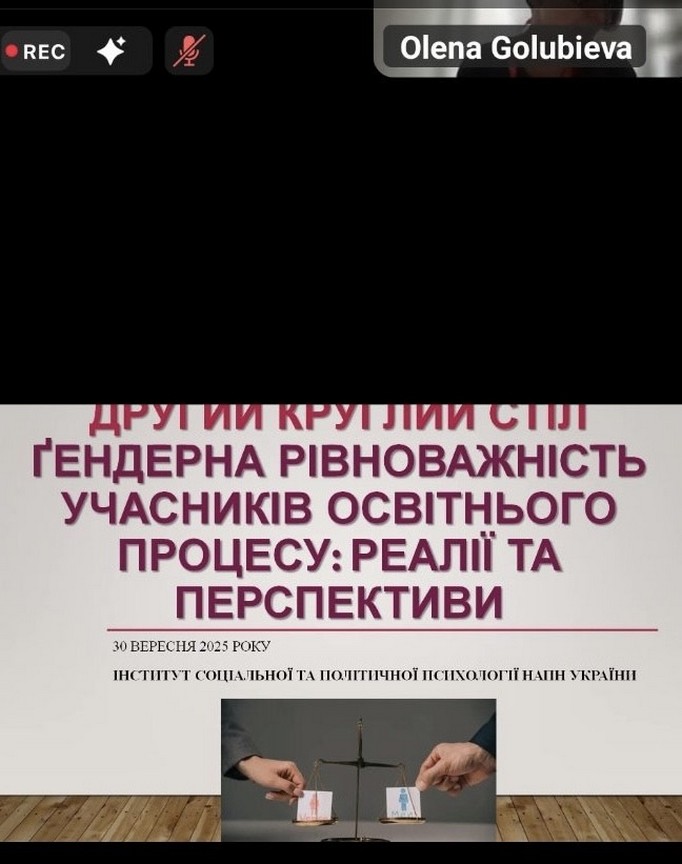 30 вересня 2025 року викладачі кафедри психології та здобувачі вищої освіти 1 курсу ОС магістр ОП «Психологія» в межах вивчення ОК «Гендерна психологія» взяли участь у роботі Другого Круглого столу «Ґендерна рівноважність учасників освітнього процесу: реалії та перспективи», який відбувся на базі Інституту соціальної та політичної психології НАПН України в змішаному режимі.